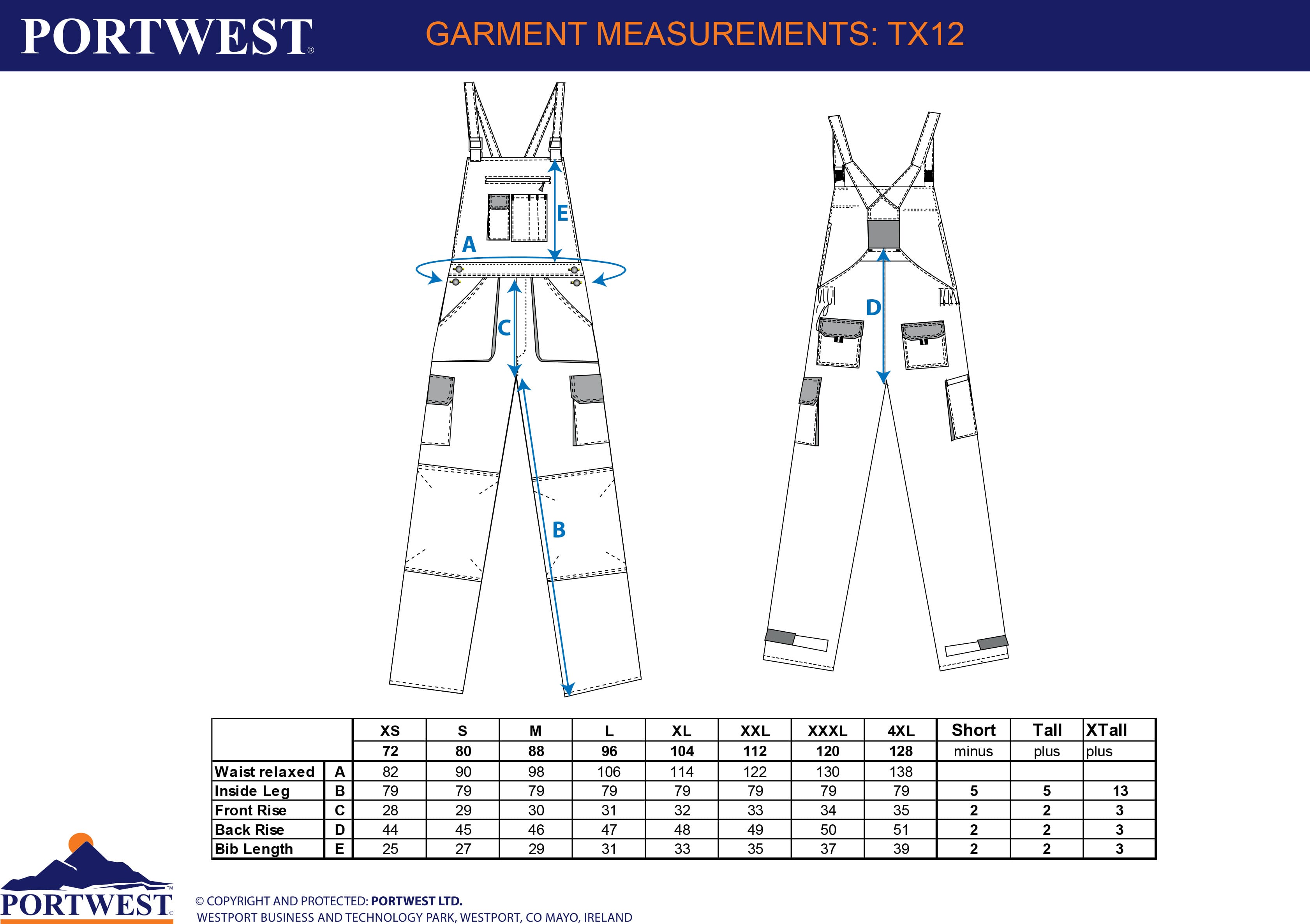 The Portwest Texo cotton rich fabric creates a very comfortable yet practical garment. This bib and brace offers complete lower body and leg protection. Features include a concealed bib pocket, kneepad pockets and thigh pockets. Hook and loop at the leg end ensures a secure fit.